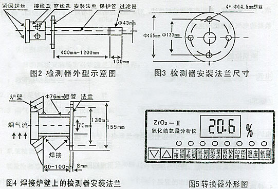 5.1 取樣點位置的選擇 選擇取樣點的原則有: 5.1.1 所取的氣樣能快速反映工藝的變化情況,即氣體要具有代表性; 5.1.2 取樣點的溫度、壓力、流量等參數不應變化太大; 5.1.3 氧檢測器插入深度應達到煙道氣流部位,避免死區; 5.1.4 切忌在管道、煙道底部開口取樣; 5.1.5 取樣點附近爐膛、煙道應無、泄漏,否則將造成測量誤差; 5.1.6 要選擇在易于維護、檢修的地方。 5.2 氧量檢測器的安裝 氧量檢測器的安裝參照圖3、圖4、進行